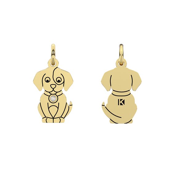 Ciondolo in acciaio 316L e PVD giallo cane con cristallo . Dimensioni: ciondolo 17x10.5 mm, cristallo Ø 1.5 mm