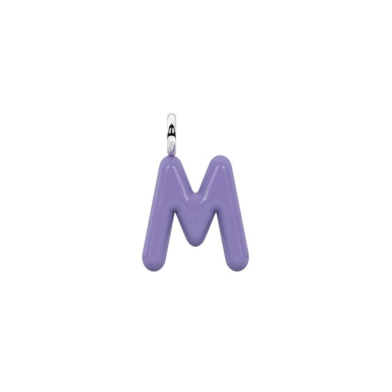 Ciondolo in acciaio smaltato viola a forma di lettera "M". • Dimensione ciondolo: 11,5x14 mm • Materiale: Acciaio 316L, Smalto