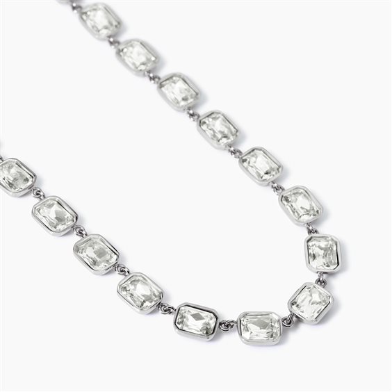 Girocollo regolabile con cristalli ottagonali bianchi taglio grande. • Diametro cristalli tondi: 3 mm • Dimensione cristalli ottagonali: 10 x 8 mm • Misura regolabile, lunghezza da 39 a 42,5 cm • Materiale: Acciaio 316L, Cristalli