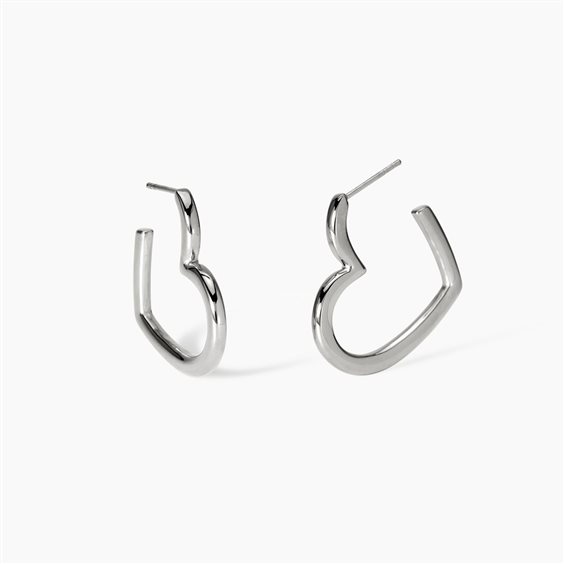 Orecchini a cerchio in acciaio a forma cuore. • Dimensione cuore: 16x25 mm • Materiale: Acciaio 316L