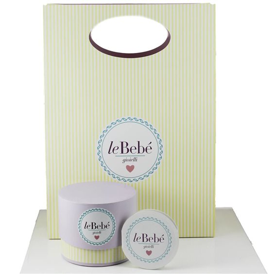 Ciondolo con sagoma femminuccia in oro bianco , altezza 1,40 cm. larghezza 1,20 cm., cordino color nero e distanziatore in oro bianco con cuoricino traforato. Tutti i gioielli della linea le Bebé possono essere personalizzati.