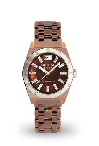 STEALTH SOLO TEMPO AL QUARZO, CASSA IN ACCIAIO E TITANIO E DIAMANTI - MARRONE Caratteristiche tecniche: Movimento: SOLO TEMPO AL QUARZO Dimensione Cassa: 33 mm Materiale Cassa: ACCIAIO E TITANIO CON TRATTAMENTO PVD Colore Quadrante: MARRONE MADREPERLA Materiale Cinturino: ACCIAIO PVD Misura Ansa: 18 Impermeabilità: 5 ATM Vetro: MINERALE ANTIGRAFFIO TRATTAMENTO ZAFFIRO