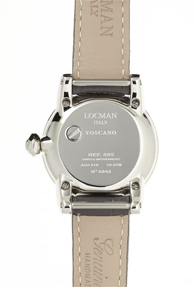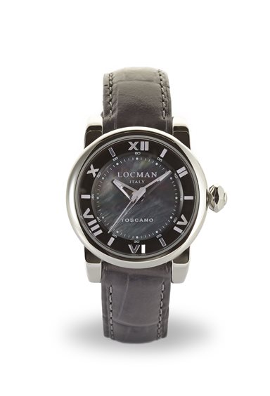 Orologio della collezione TOSCANO LADY, cassa in acciaio da 33mm, quadrante in madreperla naturale grigio con numeri romani applicati, corona a vite, vetro minerale antigraffio trattamento zaffiro. Cinturino in pelle grigia con chiusura ardiglione. Impermeabilità 10ATM. Garanzia 2 anni.