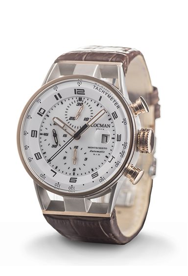 MONTECRISTO CRONOGRAFO MECCANICO AUTOMATICO, CASSA IN ACCIAIO E TITANIO - ROSE GOLD tecniche Movimento: CRONOGRAFO MECCANICO AUTOMATICO Dimensione Cassa: 44 MM Materiale Cassa: ACCIAIO E TITANIO Colore Quadrante: BIANCO Specifiche Colore Quadrante: FINITURE BLU Indicatori Quadrante: NUMERI ARABI STAMPATI Materiale Cinturino: SILICONE Colore Cinturino: BLU Misura Ansa: 26 Impermeabilità: 10 ATM Vetro: MINERALE ANTIGRAFFIO TRATTAMENTO ZAFFIRO