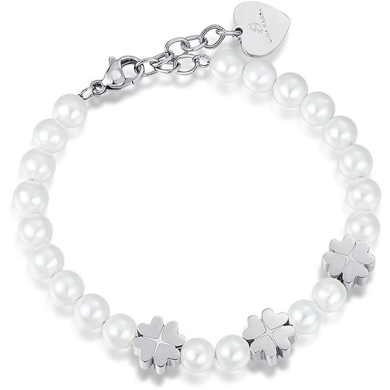 Bracciale Da Donna Di Luca Barra. Bracciale In Acciaio Con Perle Bianche E Quadrifogli. Lunghezza: 17 + 3 Cm. La Referenza È Bk1832 Questo bracciale verrà spedito con Scatola Originale Luca Barra