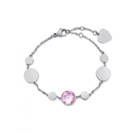 Bracciale in acciaio con pietre rosa. Lunghezza: 16,5 + 3 cm