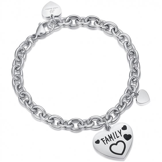 Bracciale Luca barra in acciaio ciondolo a forma di cuore con inciso FAMILY