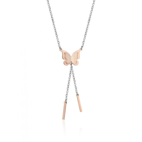 Collana donna Luca Barra con farfalla in acciaio. Farfalla in acciaio rosé con glitter rosé. Lunghezza: 40 + 5 cm Misura farfalla: 17 x 13 mm