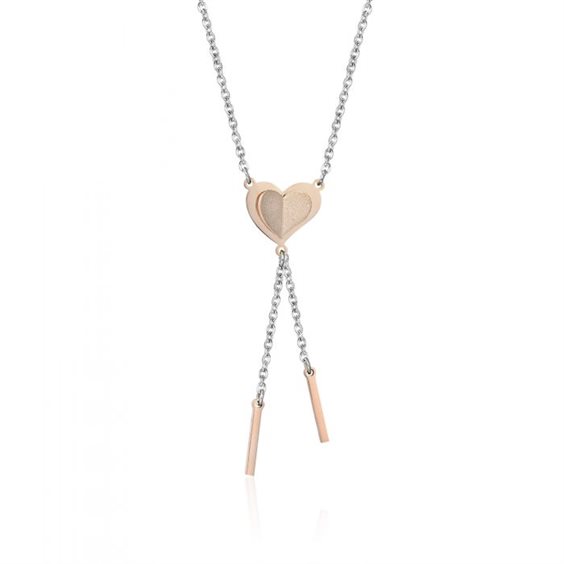 Collana donna in acciaio Luca Barra con cuore. Cuore in acciaio rosé con glitter rosé. Lunghezza: 40 + 5 cm Misura cuore: 14 x 12 mm