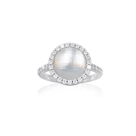 Anello Mabina in Argento 925/°°°, Madreperla, Vetro e Zirconi, misura 19.