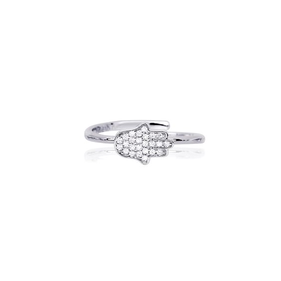 Anello in argento con mano di fatima in pavé di zirconi. MISURA REGOLABILE