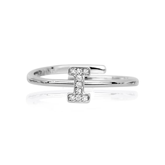 Anello in argento 925/°°°con zirconi lettera I Ø 1 mm, misura regolabile da 11 a 19