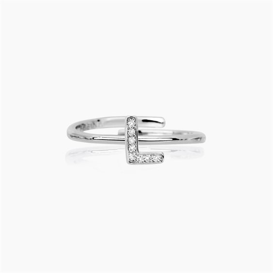 Anello Mabina in argento 925 con lettera L con zirconi. Misura regolabile.