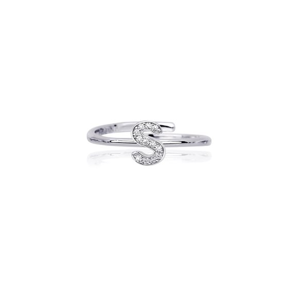 Anello Mabina argento 925 con lettera s e zirconi, misura regolabile