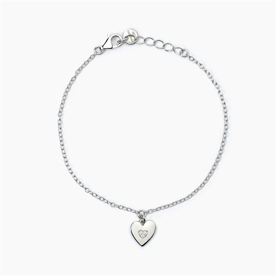Bracciale in argento 925/°°° rodiato con catena forzatina 1.5 mm, pendente cuoricino 8x8.5 mm e zirconi Ø 1 mm, lunghezza regolabile da 14.5 a 16.5 cm