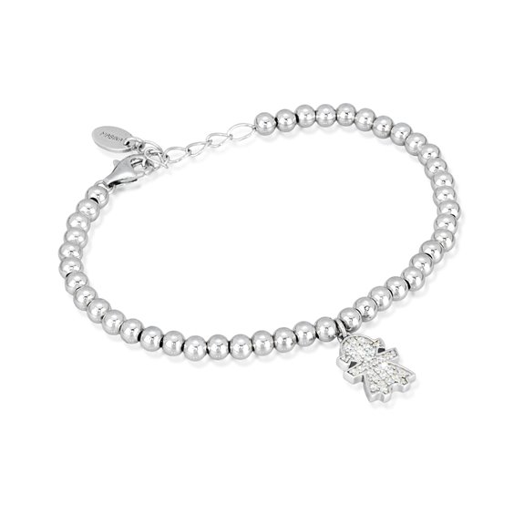 Bracciale in Argento 925/°°° e ciondolo a forma di bambina con Zirconi.Tutti i gioielli Mabina sono realizzati in materiali ipoallergenici con metodi di lavorazione nel pieno rispetto delle normative italiane ed internazionali vigenti.