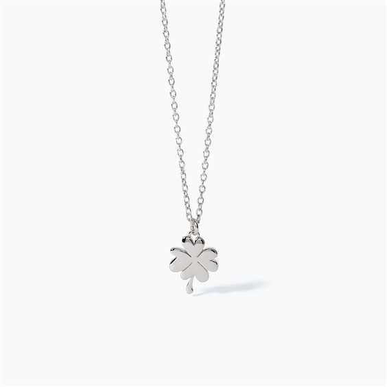 Collana bimba in argento con ciondolo portafortuna a forma di quadrifoglio. • Chiusura con moschettone • Misura regolabile, lunghezza da 38 a 41 cm • Materiale: Argento 925