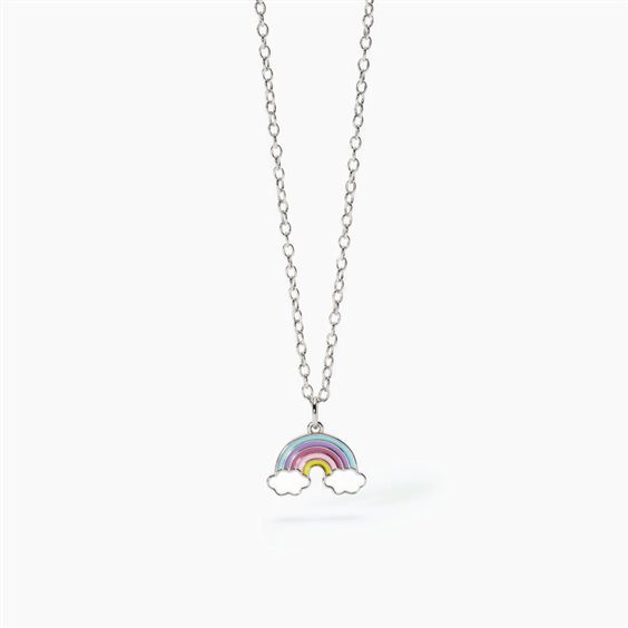Girocollo in argento 925/°°° rodiato con catena forzatina 1.5 mm e pendente arcobaleno smaltato 11.5x7.5 mm, lunghezza regolabile da 38 a 41 cm
