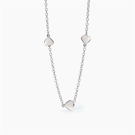 Girocollo in argento 925/°°° rodiato con catena forzatina 1.5 mm ed elementi cuoricino 5.5x5 mm, lunghezza regolabile da 35 a 39 cm