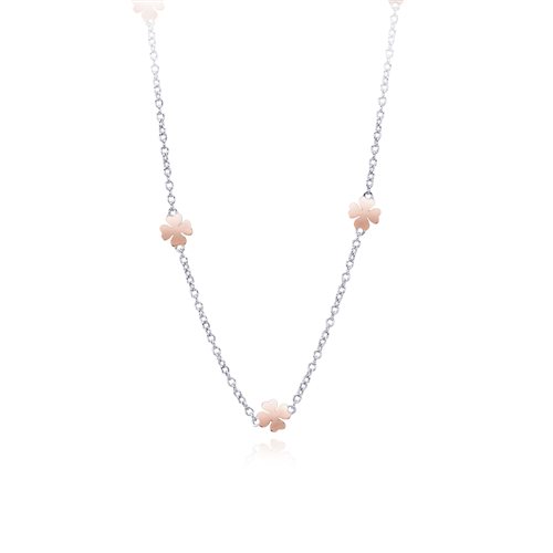 COLLANA MABINA GIROCOLLO ARGENTO 925 E ARGENTO ROSATO CON QUADRIFOGLI