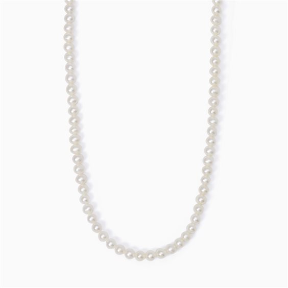 Collana in argento 925/°°° rodiata con perle coltivate Ø 4.5-5 mm, zirconi Ø 1.25 mm e chiusura ovale, lunghezza 85 cm.