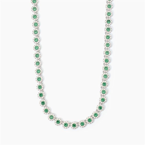 Girocollo tennis in argento 925/°°° rodiato con smeraldi sintetici Ø 3 mm e zirconi Ø 1.25 mm, lunghezza regolabile da 36 a 41 cm