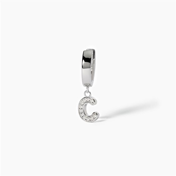 Monorecchino a cerchio in argento con lettera C in zirconi