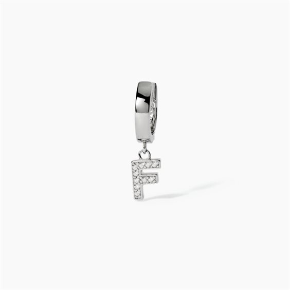 Mono orecchino Mabina in argento 925 a cerchio con pendete a lettera F con pavè in zirconi