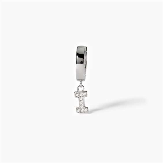 Monorecchino a cerchio in argento con lettera I in zirconi