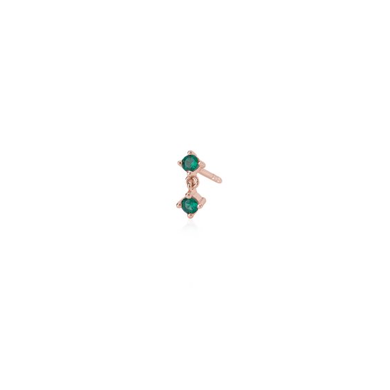 MONORECCHINO PIETRE COLORATE Monorecchino in argento rosato con smeraldi sintetici. • Incastonatura a griffe a quattro punte • Diametro degli smeraldi sintetici: 2,5 mm • Misura unica • Materiale: Argento 925 rosato, Smeraldo sintetico