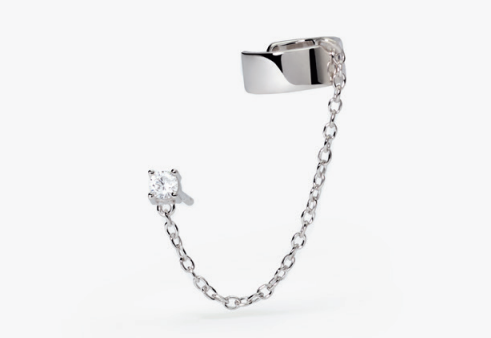 Orecchino ear cuff da donna in argento rodiato con catenina e punto luce a lobo. • Diametro esterno del cerchio: 11 mm • Diametro zirconi: 3 mm • Apertura: 4 mm • Materiale: Argento 925, Zircone