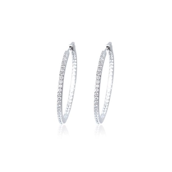 Orecchini s Cerchio in argento 925/°°° della collezione Upper, rodiato con zirconi del diametro 3.5 mm.