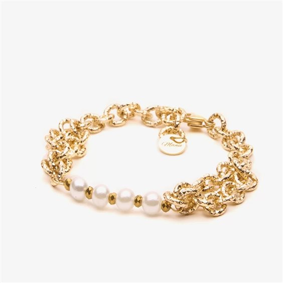 Bracciale Rondella Imperial Satinata Bracciale catena rondella satinata in alluminio di diametro interno di 6mm con inserita maxi perla di 2 cm di diametro interno montata al centro del bracciale dalla quale partono due giri di catena . Il bracciale ha una chiusura in acciaio inossidabile. Misura standard di 18cm e dispone di una prolunga finale di 3cm.