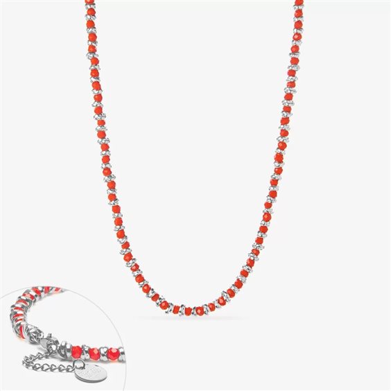 Collana di cristalli di 3mm montati su filo metallico alternati con rondelle in alluminio con chiusura in acciaio inossidabile. Lunghezza standard 45 cm più 5 cm di prolunga finale.