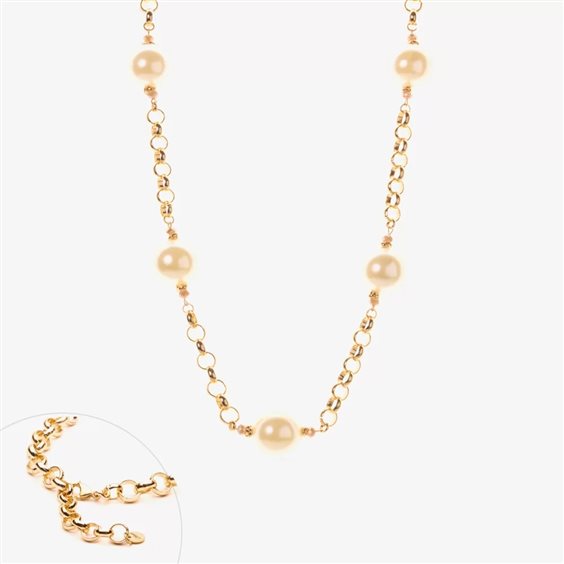 Collana Rondella Imperial Bonton Collana catena rondella in alluminio di misura 8mm con alternanza di maxi perle di diametro interno di 2cm. La collana ha una chiusura in acciaio inossidabile. Misura di 60cm e dispone di una prolunga finale di 5cm.