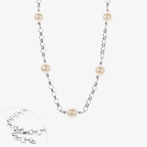 Collana Rondella Imperial Bonton Collana catena rondella in alluminio di misura 8mm con alternanza di maxi perle di diametro interno di 2cm. La collana ha una chiusura in acciaio inossidabile. Misura di 60cm e dispone di una prolunga finale di 5cm.
