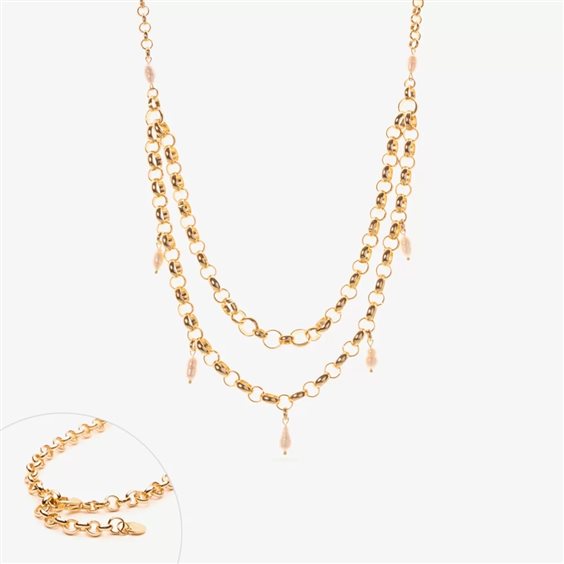 Collana Rondella Imperial Doppio Giro Collana catena rondella di misure miste in alluminio composta da due giri catena con perle scaramazze pendenti. La collana ha una chiusura in acciaio inossidabile. Misura standard di 50cm e dispone di una prolunga finale di 5cm.