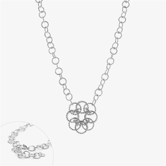 Collana Rondella Imperial Satinata Fiore Collana catena rondella satinata in alluminio di diametro interno di 9mm con fiore realizzato con rondelle satinate di diverse misure alternate da maxi perle con diametro di 2cm. La collana ha una chiusura in acciaio inossidabile. Misura standard di 60cm e dispone di una prolunga finale di 5cm.