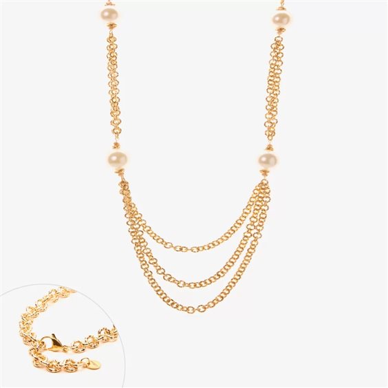 Collana Rondella Imperial Satinata Collana catena rondella satinata in alluminio di diametro interno di 6mm con inserite maxi perle di 2 cm di diametro interno alle quali è montato doppio giro di catena satinata. La lunghezza della catena del giro più corta è di 80cm, la lunghezza del giro più lungo è di 100cm. La collana ha una chiusura in acciaio inossidabile.
