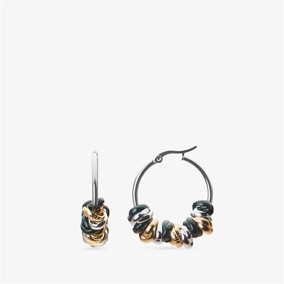 Cerchi in acciaio inossidabile silver con rondelle in alluminio in tre colori alternati. Medium: diametro interno 3 cm – ampiezza rondelle 8mm