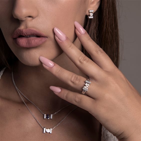 Base anello componibile in argento 925 e zaffiri bianchi, con binario in cui poter aggiungere gli elementi per la personalizzazione. La base-anello della nuova collezione Letters è regolabile per cui si adatta a qualsiasi misura. Si consiglia di contattarci per disponibilità e per soluzioni di composizione
