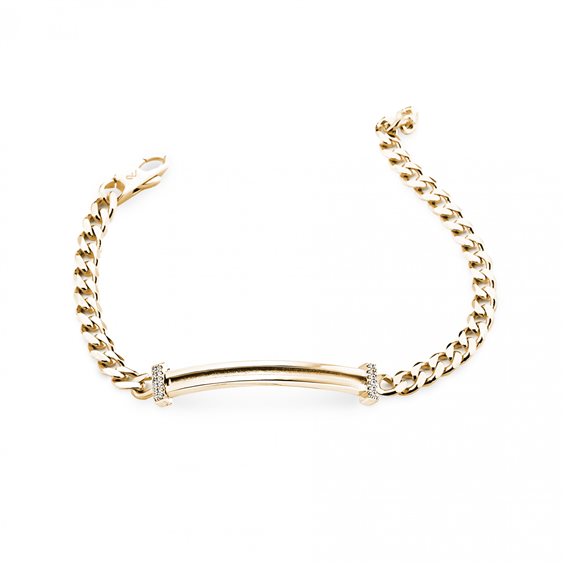 Base bracciale collezione Letters componibile con catena groumette, in argento 925 e zaffiri bianchi