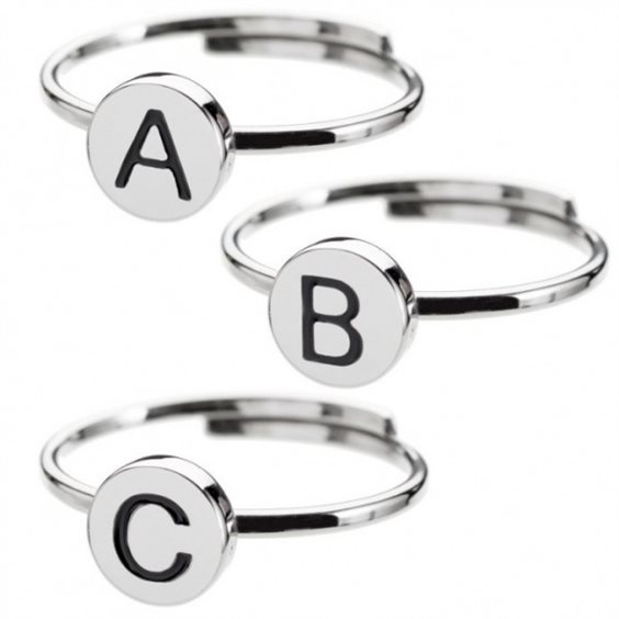 Anello regolabile in acciaio con lettera smaltata K, Misura regolabile, dimensioni piastrina lettera 6,8mm