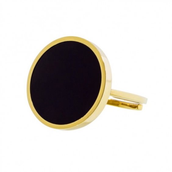 Anello in acciaio e pvd oro con acrilico nero di 20 mm di diametro Collezione: Woman Chic Materiali: Acciaio, acrilico, pvd oro. Misura regolabile