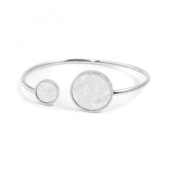 Bracciale rigido con 2 cerchi in acciaio con madreperla ed incisione Be Woman Collezione: Woman Chic 24 Materiali: Acciaio, madreperla