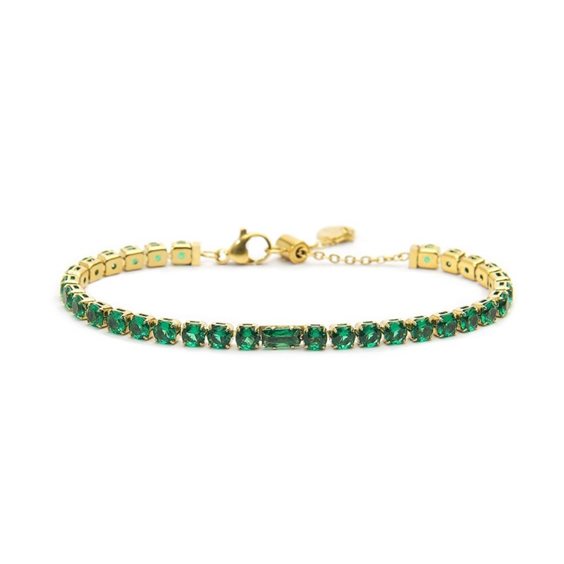 Bracciale con catena tennis con cubic zirconia 4 mm, con al centro un cubic zirconia taglio baguette. Lunghezza totale 19 cm regolabile tramite cursore da 19 cm a 15 cm. Chiusura con moschettone. Marlù logo tag presente all' estremità.