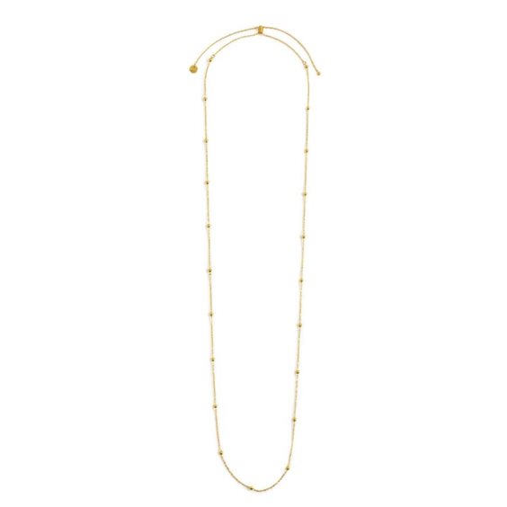 Collana in acciaio con pvd oro con catena "O" e catena con sfere di acciaio. Lunghezza totale 90 cm regolabile con cursore cilindrico con silicone da 90 cm a 67 cm