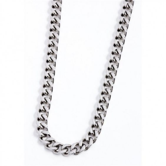 Catena in acciaio maglia grumetta piatta spessore 10 mm con doppio moschettone con texture bugnata e logo Marlù inciso.