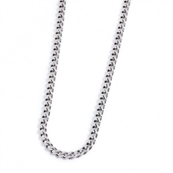 Catena in acciaio maglia grumetta piatta spessore 6 mm con doppio moschettone con texture bugnata e logo Marlù inciso.
