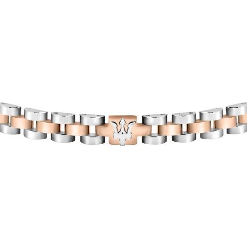 Bracciale da uomo in acciaio inox color argento e oro rosa. Lunghezza totale di 21 cm, regolabile grazie alla possibilità di rimuovere una maglia alla chiusura